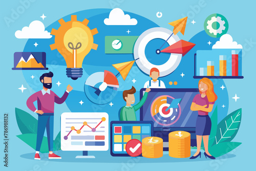 Business Team Collaborating on Data Analysis, Strategy Development and Financial Growth. Modern Digital Marketing Concept