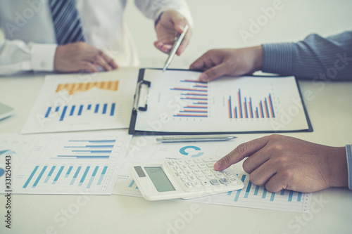 Business team meeting analyze financial graphs market growth reports And corporate income tax, Analysis of financial accounting and real estate investment concept..