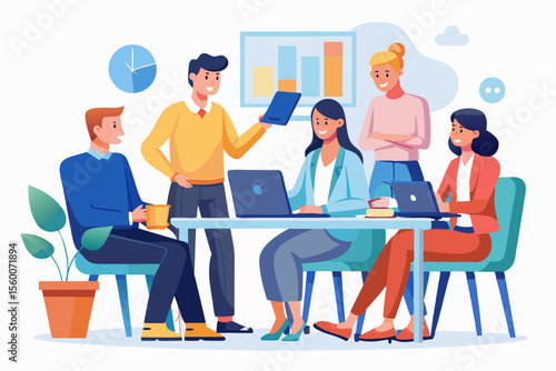 Business Team Meeting and Presentation – Modern Office Vector Illustration