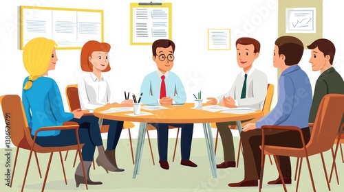 Business team meeting around a table in an office.