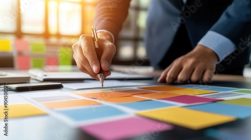 Business team planning a project , with sticky notes