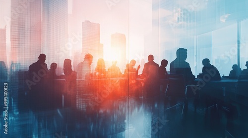 Business Team Silhouettes Against Sunset Scene