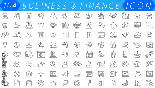 business teamwork finance icons, team building, work group and human resources. Outline icons collection. Line style - vector illustration