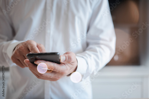 Business technology concept.Work using typing smart phone ai technology, planning ideas investors internet searching, ideas connecting people.