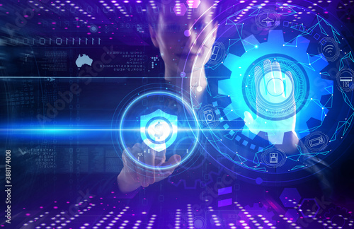 Business, technology, internet and network concept. Young businessman thinks over the steps for successful growth: