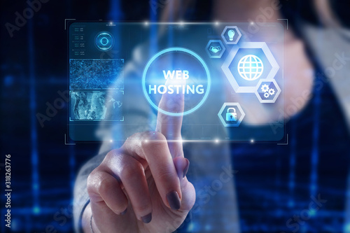 Business, Technology, Internet and network concept. Young businessman working on a virtual screen of the future and sees the inscription:
