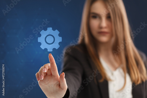 Business, Technology, Internet and network concept. Young businessman working on a virtual screen of the future and sees the inscription: