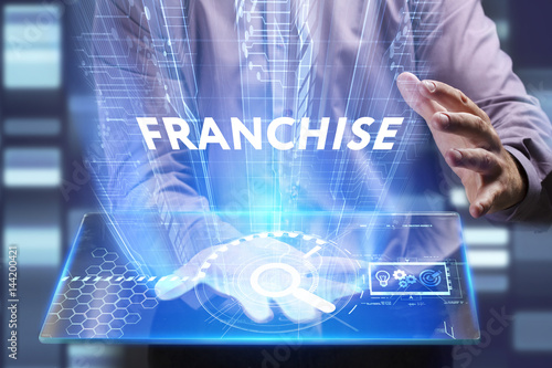 Business, Technology, Internet and network concept. Young businessman working on a virtual screen of the future and sees the inscription: Franchise