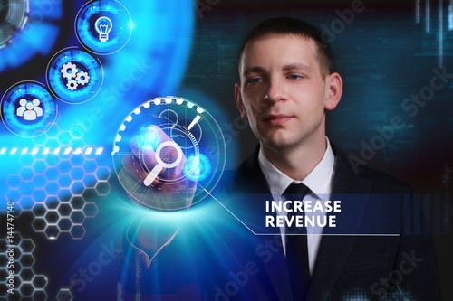 Business, Technology, Internet and network concept. Young businessman working on a virtual screen of the future and sees the inscription: Increase revenue