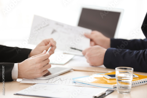 Business trainer and client working in office, closeup