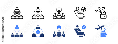 Business Travel icon sheet with Conference, Meeting, Meetings, Business, Expenses.
