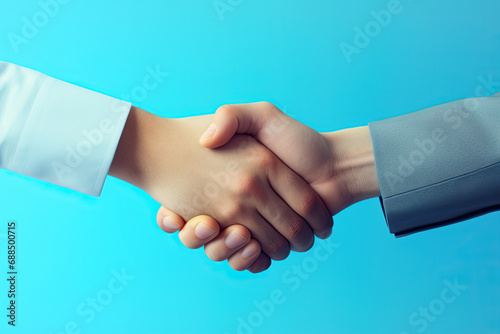 business two people shaking hands in a blue background