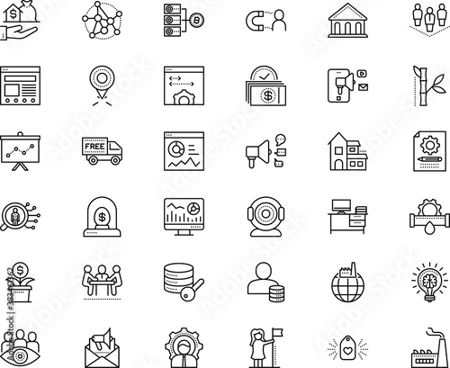 business vector icon set such as: world, cottage, refinery, key, map, pipe, position, view, government, crypto, courier, women, window, apartment, column, contour, innovative, direction, bitcoin