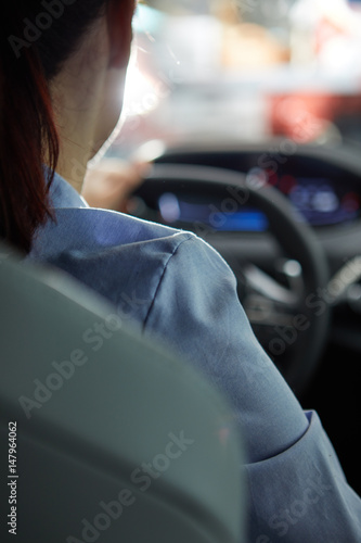 Business woman driving her new car