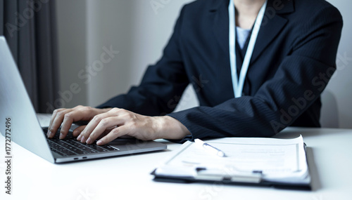 Business woman employer holding resume hiring recruit looking cv resume to hire candidates, analyzing information before job interview. Recruitment concepts