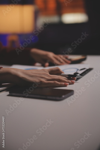 Business woman using calculator for do math finance on wooden desk in office and business working background, tax, accounting, statistics and analytic research concept