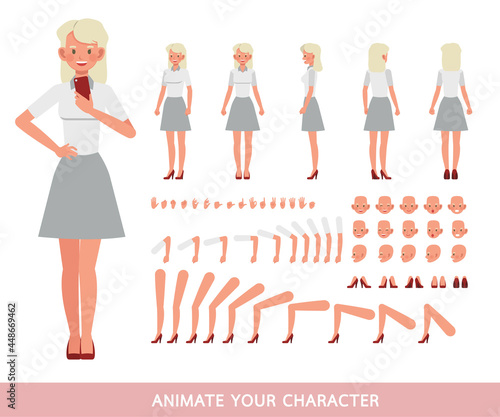 Business Woman wear white shirt and grey skirt character vector design. Create your own pose.