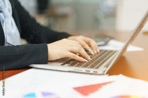 Business woman working at office with laptop and documents on her desk,office workplace with computer on table, business concept