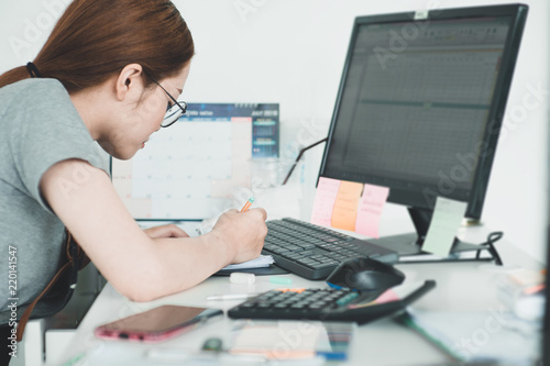 Business woman working with computer.Working at home.Successful owner business woman.Office workplace environment.Woman hands at work.