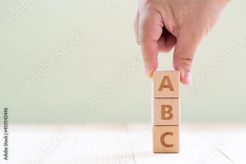 Business Word ABC, A Wooden ABC Blocks on background with copy space using for Learning and development, Children Kids Boy or Girl in Nursery Kindergarten eLearning Program, Self Learning from Home