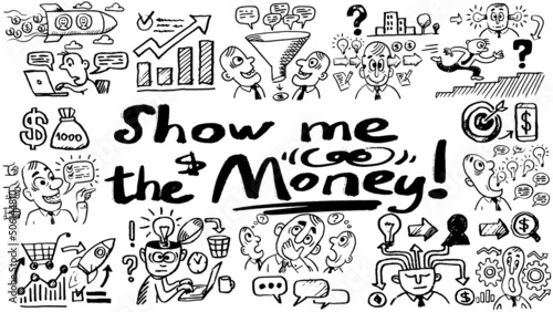 Business words and phrases typography doodle graphic with concept icons and symbols