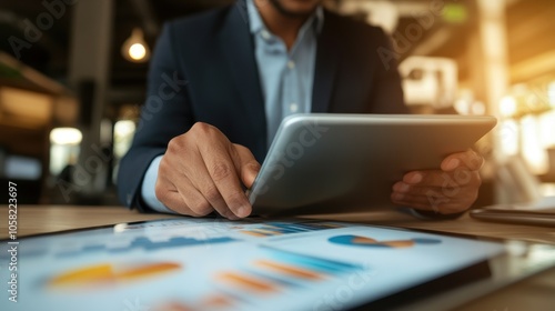 Businessman Analyzing Data on Tablet