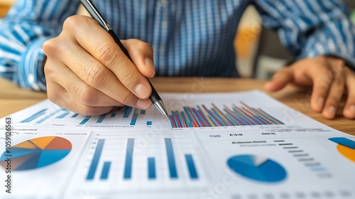Businessman Analyzing Financial Data Plain Textured Background for Web Design and Copy