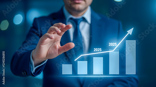 Businessman Analyzing Growth Chart with Virtual Interface in Professional Setting for Strategic Planning and Financial Analysis in 2025