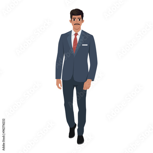 Businessman character in formal tie suit outfit. Flat vector Character illustration