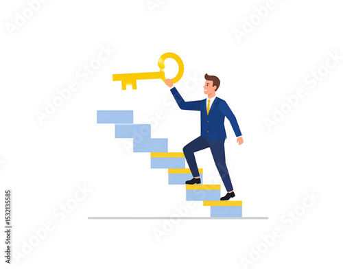 Businessman Climbing Stairs Holding a Golden Key Symbolizing Success and Achievement (3)