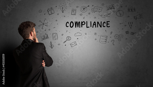 businessman drawing a creative idea sketch with COMPLIANCE inscription, business strategy concept
