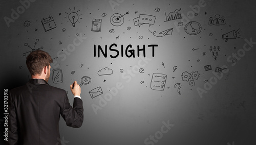 businessman drawing a creative idea sketch with INSIGHT inscription, business strategy concept