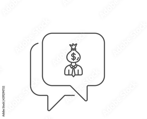 Businessman earnings line icon. Chat bubble design. Dollar money bag sign. Outline concept. Thin line manager icon. Vector
