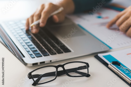 businessman executive analyzing and planning business performance from financial data, analyzing finance data and economic growth graph chart.