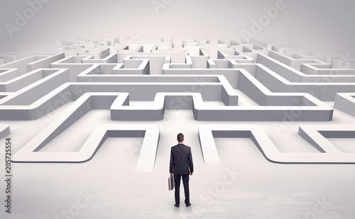 Businessman getting ready to enter a 3D flat labyrinth concept
