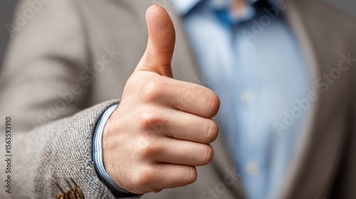 Businessman Giving a Thumbs Up Gesture in Formal Attire Close-Up