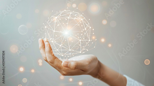 Businessman hand holding global network, futuristic technology background, Global business, internet network connection, IoT Internet of Things, business intelligence concept