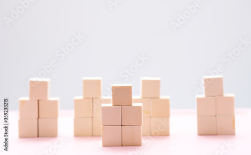 Businessman hand holding wooden cube block with business icons and business idea concept