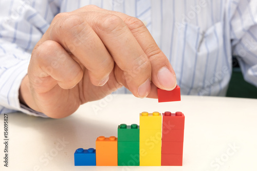 Businessman hand placing red plastic block on the top of stair. Business growth concept