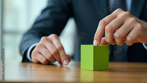 Businessman Hand Selecting Green Cube: Approve or Reject Proposal