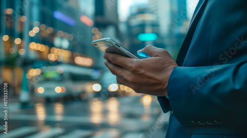 Businessman hands with smartphone ミーティングで握手をするビジネスパーソン