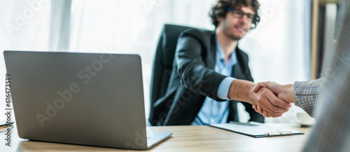 Businessman handshake for teamwork of business merger and acquisition,successful negotiate,hand shake,two businessman shake hand with partner to celebration partnership and business deal concept
