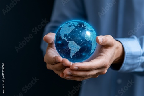 Businessman hold global business globe with network connected to digital marketing strategy and creative solution Business development technology to support creativity idea