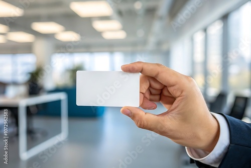 businessman holding a card with Blank business cards