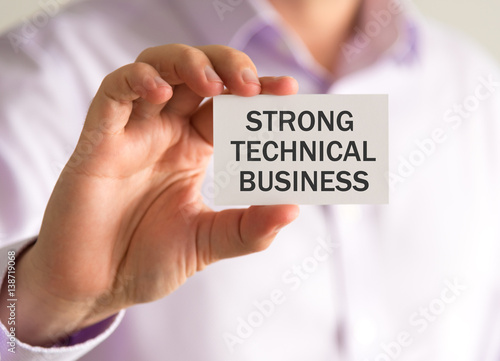 Businessman holding a card with STRONG TECHNICAL BUSINESS message