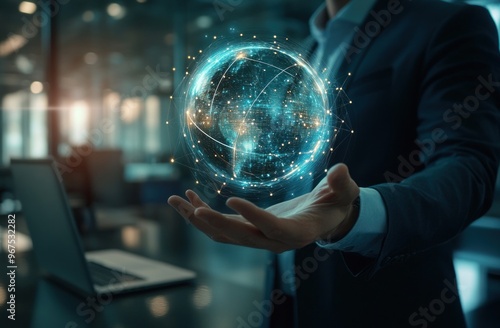 Businessman Holding a Digital Globe