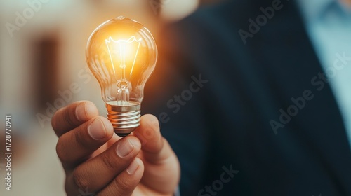 Businessman Holding a Glowing Light Bulb in His Hand Symbolizing Innovative Ideas and Bright Solutions
