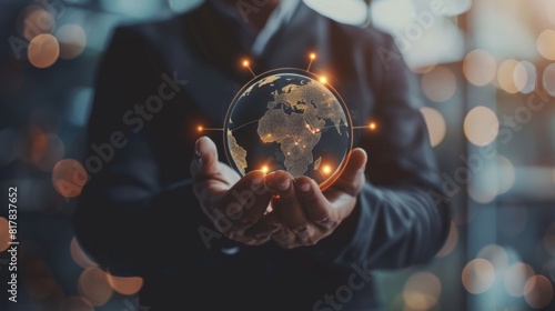 Businessman holding global network connection on social networking and customer data analytics, Business strategy and smart intelligence, digital