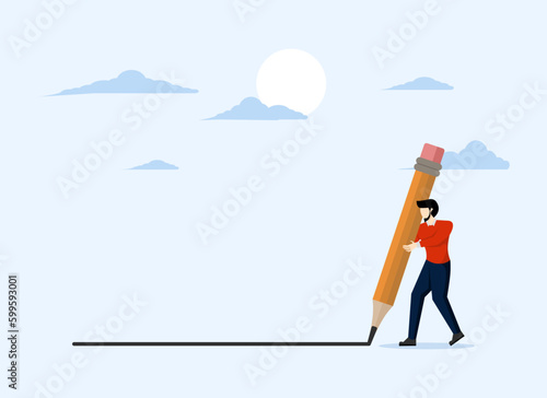 businessman holding large pencil draws outline. Set boundaries, privacy or business territory, start business planning, know boundaries or blockers or barrier concept.