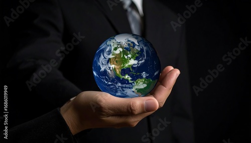 Businessman holds a globe